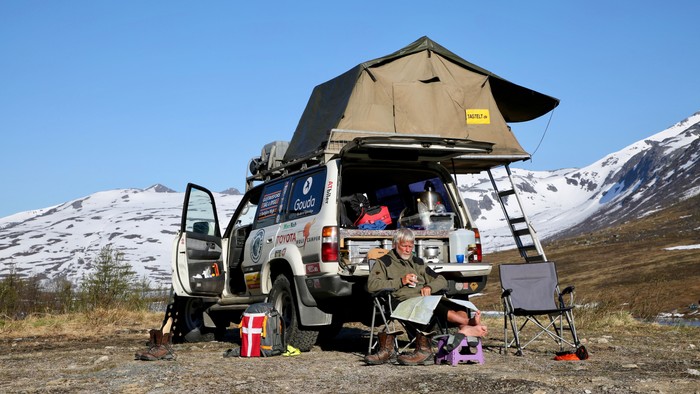 Onsdag den 8. oktober kl. 19 gæster den populære og rejseglade familie igen Grevinge. Helge lovede at gå hjem fra Nordkap, hvis naboen holdt op med at ryge... Naboen blev røgfri - og Helge på 69 år snørede vandrestøvlerne... På 73 dage gik han 3500 kilometer fra Nordkap hjem til Give... Undervejs var Anne Grethe i den gamle Landcruiser hans uundværlige støtteteam... Foredraget er ikke bare en palet af smuk natur og spændende mennesker - men også en varm fortælling om, at når to står sammen, så bliver det umulige muligt - også at samle over 200.000 kroner ind til Kræftens Bekæmpelse.